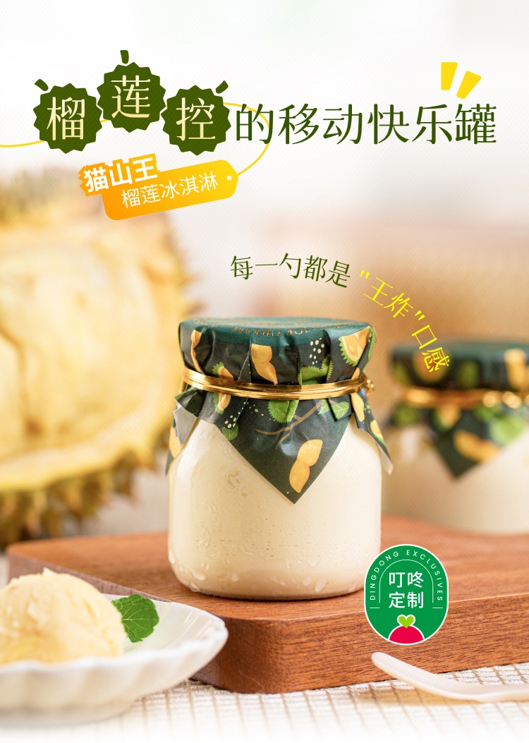 • 叮咚定制猫山王榴莲冰淇淋(2杯)140g/盒