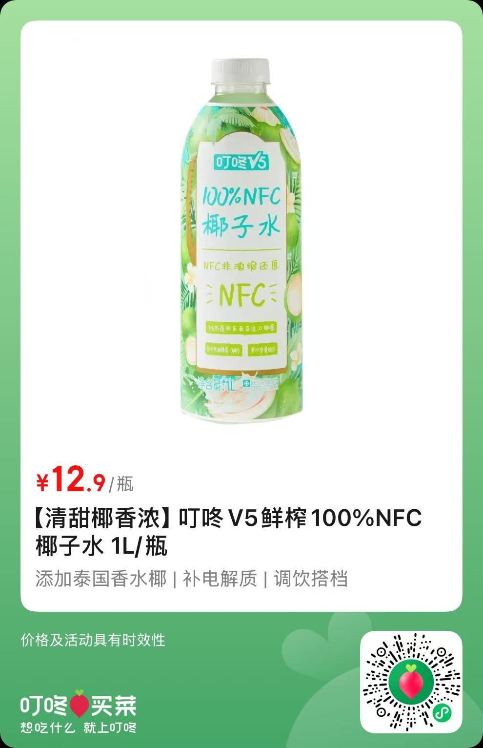 • 叮咚V5鲜榨100%NFC椰子水 1L/瓶