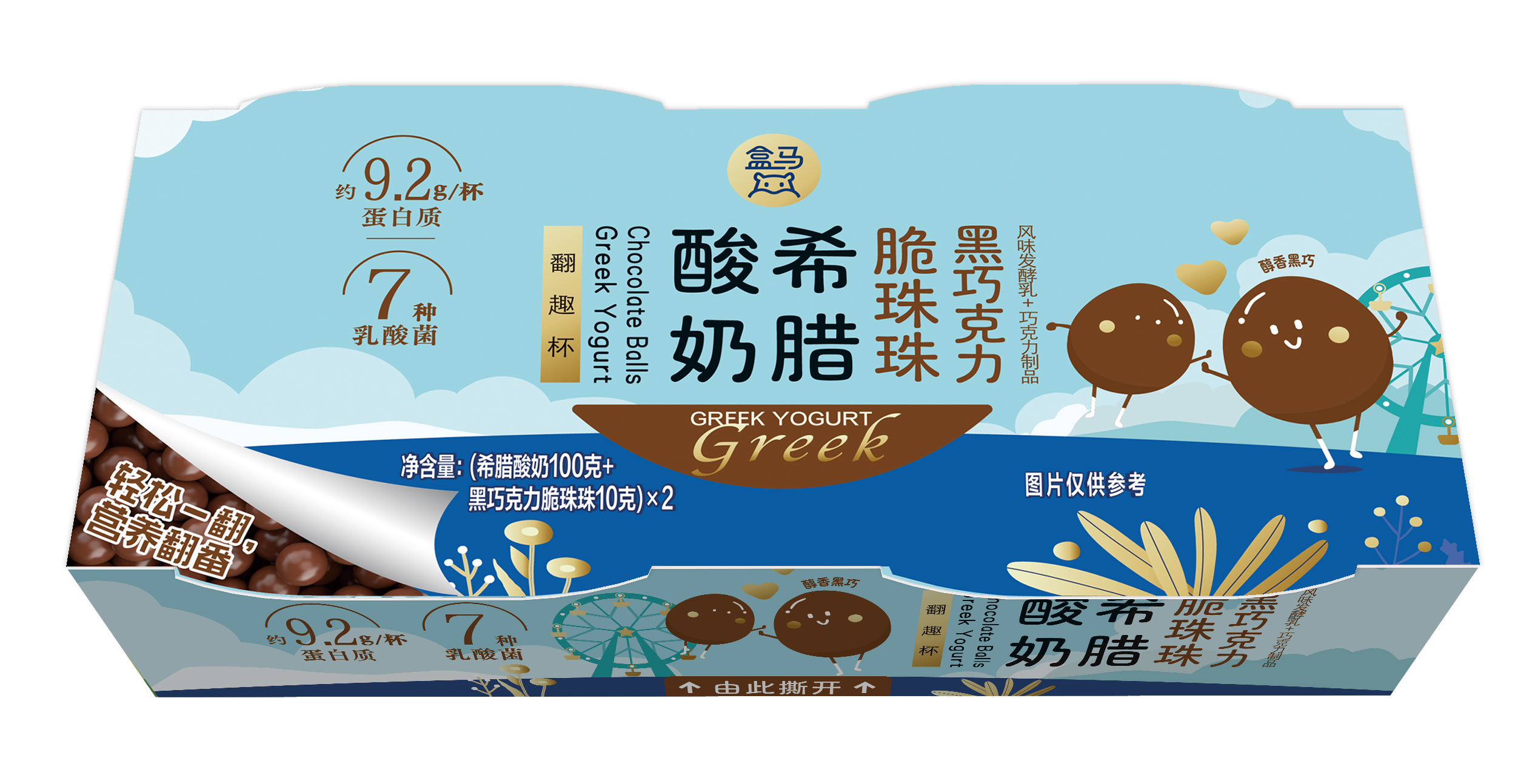 • 盒马 翻趣杯希腊酸奶 (黑巧克力脆珠珠) 110g*2